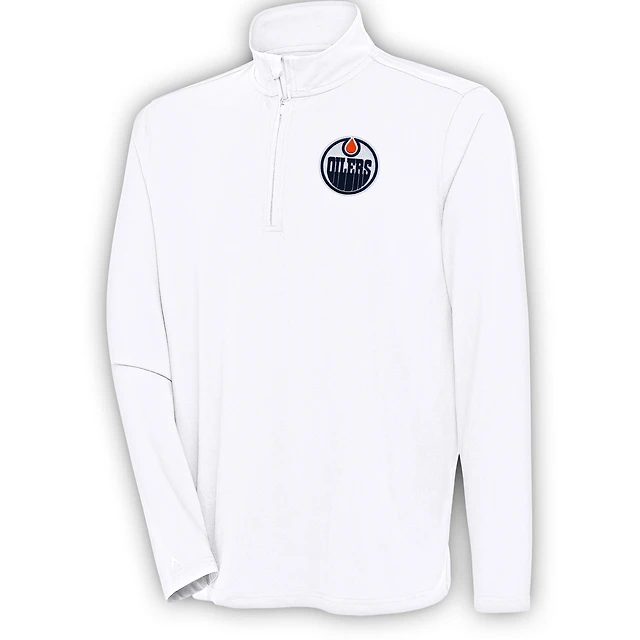 Men's Antigua White Edmonton Oilers Hunk Quarter-Zip Pullover Top
