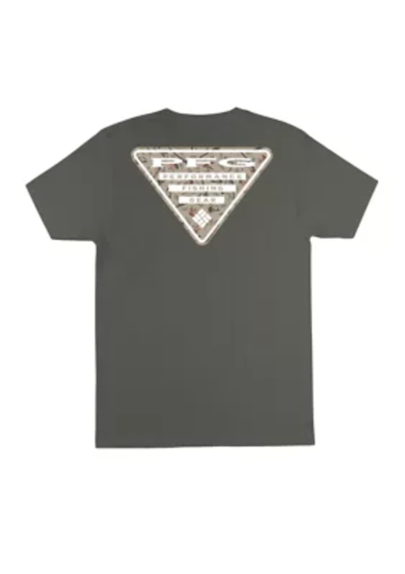 Featuring a graphic on the front and back, this Columbia T-shirt is perfect for all-day comfort and wear. Pullover Crew neck, band collar Short non-cuffed sleeves Imported Material & Care 100% cotton Machine washable