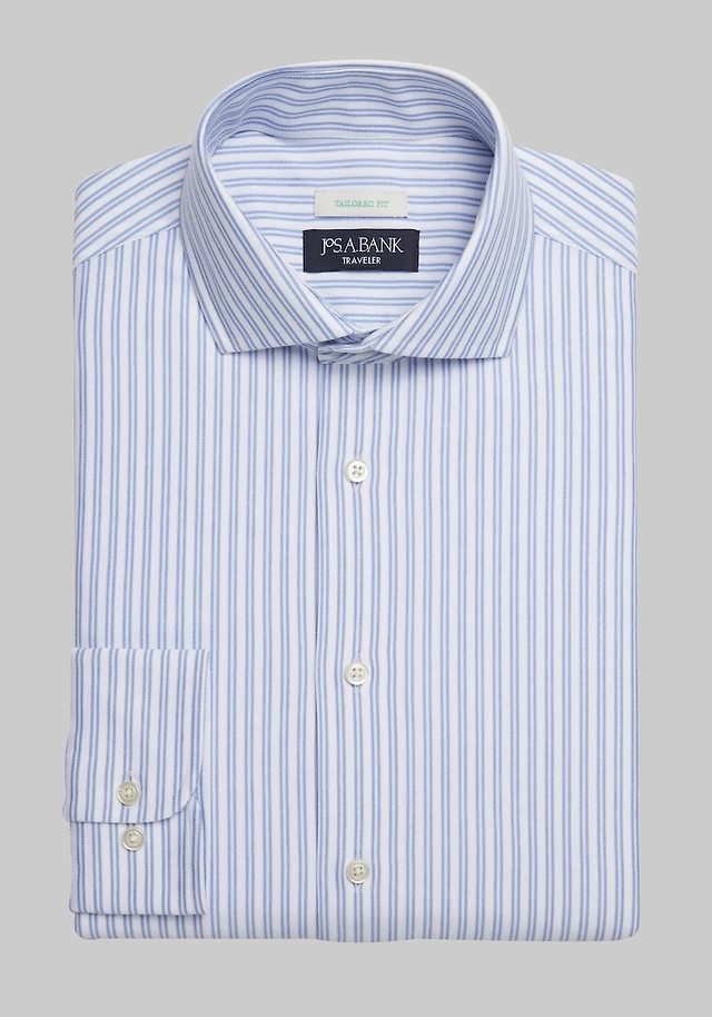 Men's Traveler® Collection Tailored Fit Spread Collar Stripe Dress Shirt at Jos. A. Bank, Blue