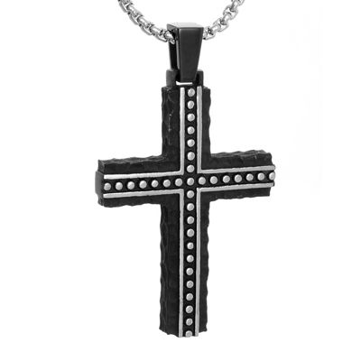 Keep what's most important closest to you with our hammered-texture black stainless steel cross.