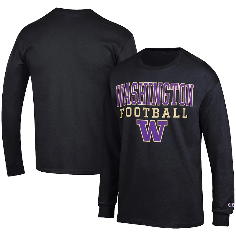 Men's Champion Black Washington Huskies Football Stack Long Sleeve T-Shirt