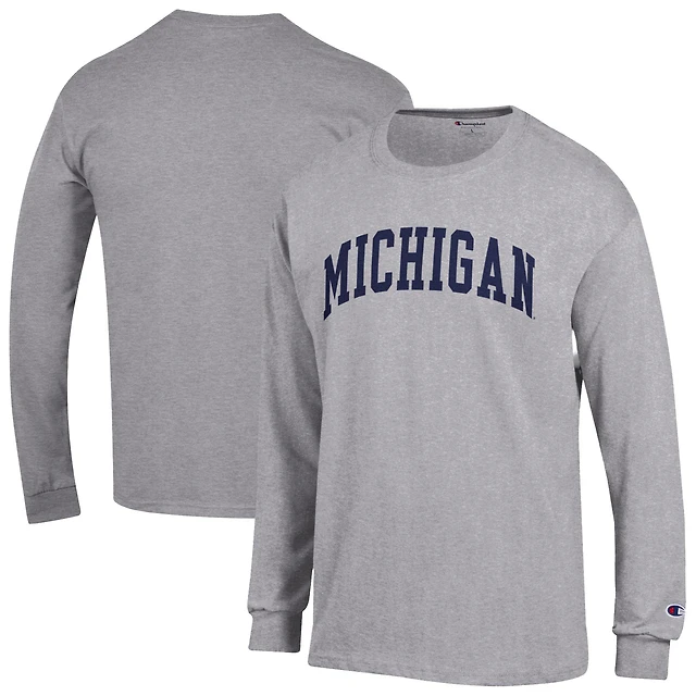 Men's Champion Heather Gray Michigan Wolverines Basic Arch Long Sleeve T-Shirt