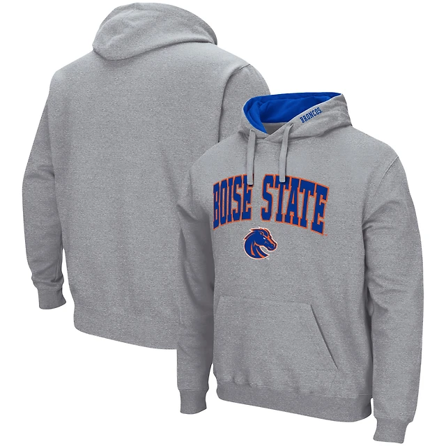 Men's Colosseum Heather Gray Boise State Broncos Arch & Logo 3.0 Pullover Hoodie
