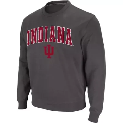 Men's Colosseum Charcoal Indiana Hoosiers Arch & Logo Crew Neck Sweatshirt