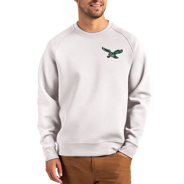 Men's Cutter & Buck Gray Philadelphia Eagles Throwback Roam Recycled Raglan Pullover Sweatshirt