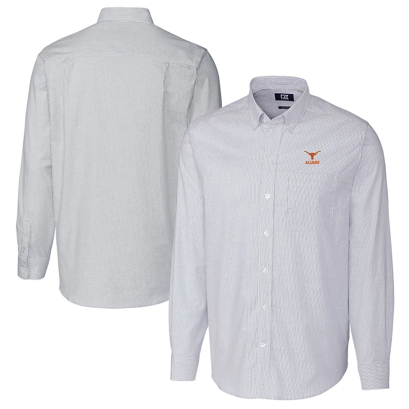 Men's Cutter & Buck  Light Blue Texas Longhorns Alumni Logo Stretch Oxford Stripe Long Sleeve Button-Down ShirtMen's Cutter & Buck  Light Blue Texas Longhorns Alumni Logo Stretch Oxford Stripe Long Sleeve Button-Down Shirt