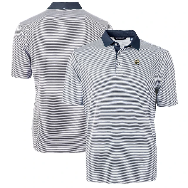Men's Cutter & Buck Navy Notre Dame Fighting Irish Alumni Logo Virtue Eco Pique Micro Stripe Recycled Polo