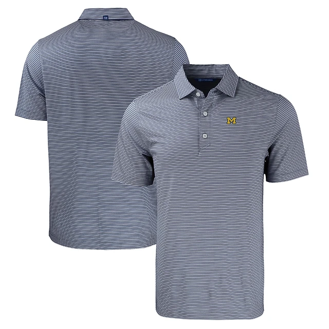 Men's Cutter & Buck Navy/White Michigan Wolverines Big & Tall Forge Eco Double Stripe Stretch Recycled Polo