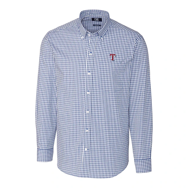 Men's Cutter & Buck Royal Texas Rangers Big & Tall Stretch Gingham Long Sleeve Button-Down Shirt