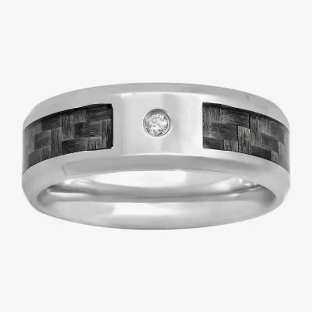Mens 8MM Diamond Accent Natural Diamond Stainless Steel Wedding Band