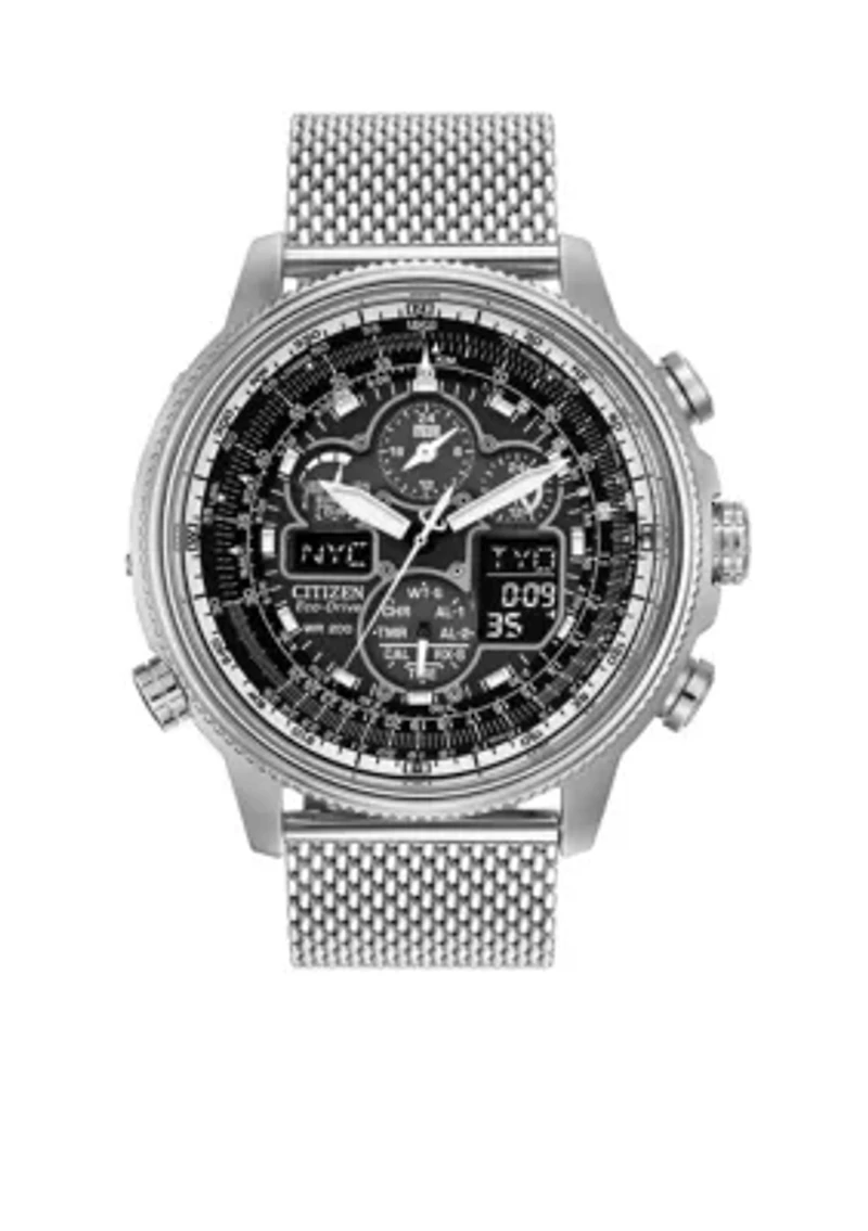 Men's Eco-Drive Stainless Steel Navihawk Perpetual Chrono A-T Watch
