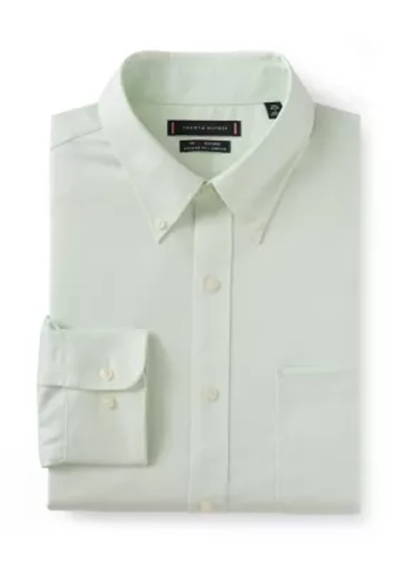 Tommy Hilfiger's super soft cotton twill fabric has superior stretch and wrinkle-free properties with effortless moisture removal. The dress shirt is finished with an embroidered logo detail on the left sleeve. Crafted in a regular fit for a relaxed, classic look. Button closure Button-down collar Long sleeves Regular fit Imported Material & Care Cotton, spandex Machine washable