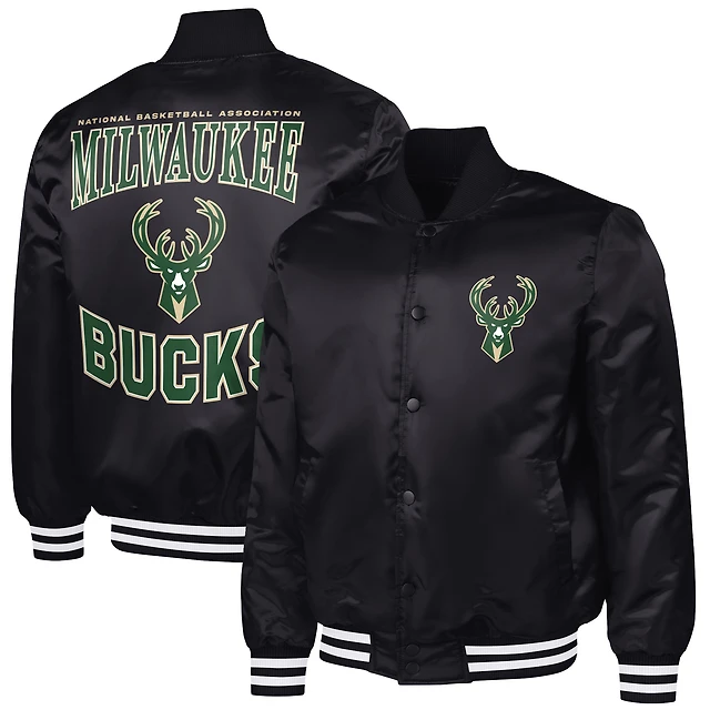 Men's G-III Sports by Carl Banks Black Milwaukee Bucks Adaptive Bold Logo Satin Varsity Jacket
