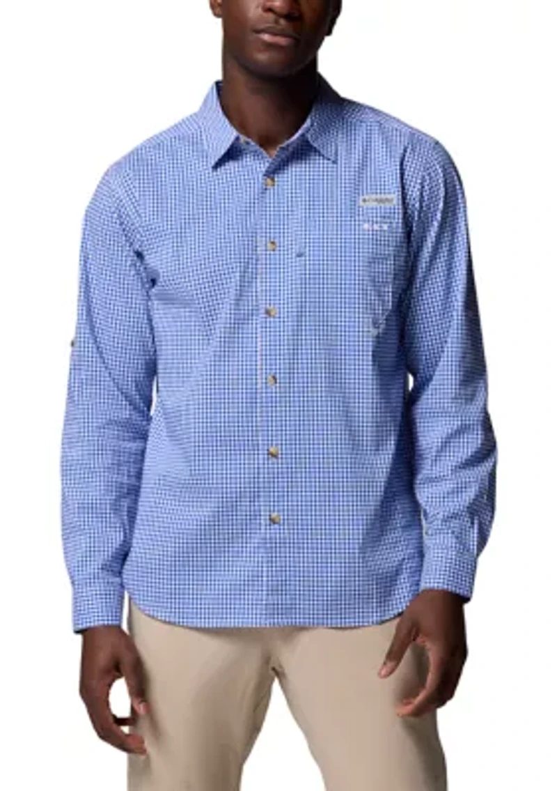 Experience ultimate comfort and sun protection with this versatile long-sleeve shirt from Columbia. Omni-Shade™ UPF 40 sun protection Omni-Wick™ Vented Roll-up sleeves with tab holders Interior security pocket Rod holder Utility loop Chest pocket Side loop on chest pocket can hold glasses or writing instrument Plaid pattern Imported Material & Care Cotton, polyester, spandex Machine washable