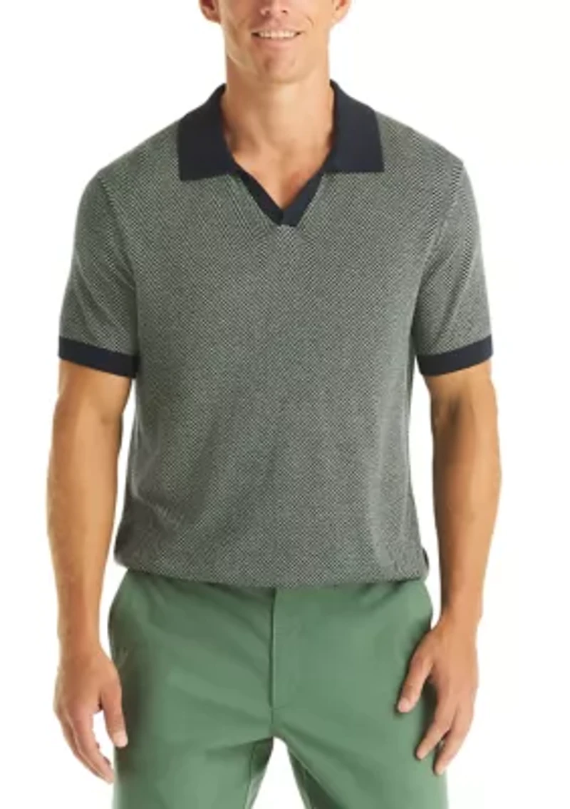 Cut for a classic fit, this Nautica sweater polo has a stitched herringbone design, ribbed split neck and Nautica's brand icon at the hem. Spread collar Short sleeves Imported Material & Care Cotton Machine washable