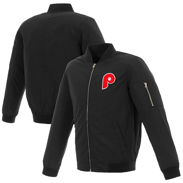 Men's JH Design Black Philadelphia Phillies Nylon Bomber Jacket with Embroidered Logo