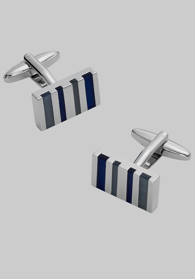 Men's Jos. A. Bank Oblong Blue Stripe Cufflinks at Jos. A. Bank, Silver/Blue,