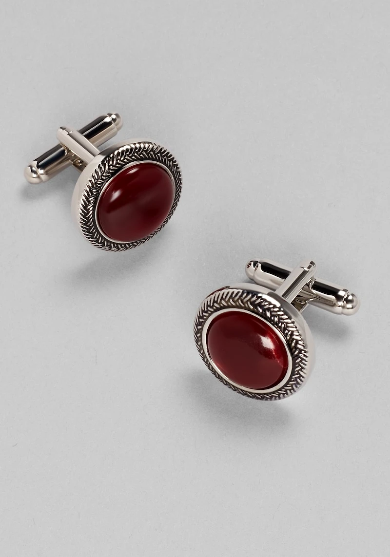 Men's Jos. A. Bank Round Stone Antique Silver Braided Border Cufflinks at Jos. A. Bank, Burgundy,