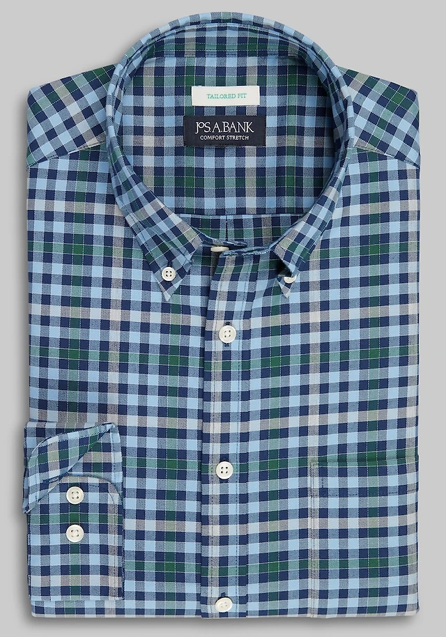 Men's Jos. A. Bank Tailored Fit Large Picnic Check Casual Shirt at Jos. A. Bank, Blue/Green