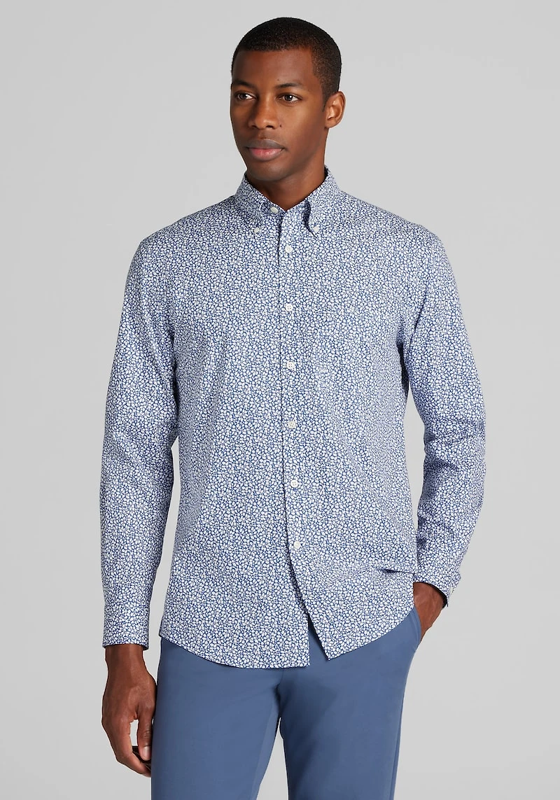 Men's Jos. A. Bank Tailored Fit Mini Leaf Button-Down Collar Casual Shirt at Jos. A. Bank, Blue/Navy