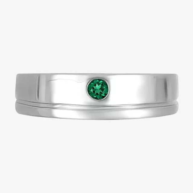 Mens Lab Created Green Emerald Sterling Silver Fashion Ring