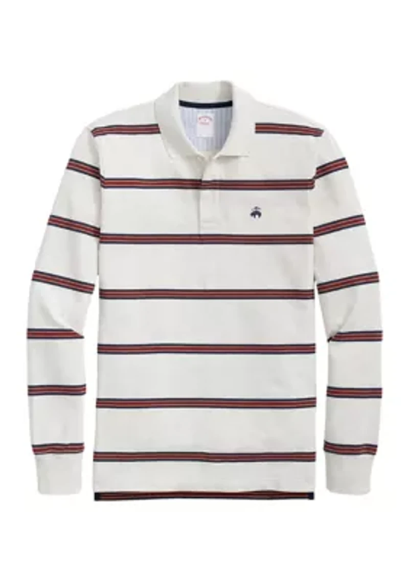 Soft and stretchy for complete comfort, this long-sleeved polo from Brooks Brothers adds preppy appeal to your wardrobe. Button closure Collar Long sleeves Stripe pattern Imported Material & Care Cotton, spandex Machine washable