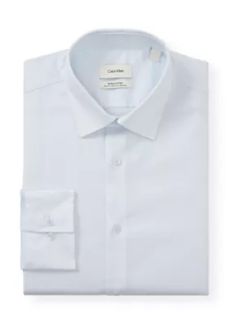 This elevated poplin dress shirt from Calvin Klein is made from premium Supima cotton with added stretch to maximize movement. Its luxuriously soft fabric is enhanced with a wrinkle-free finish, making for a neat appearance that is machine washable and dryer safe. Crafted in slim fit for a trim, modern look. Button closure Spread collar Long button cuff sleeves Imported Material & Care Cotton, spandex Machine washable