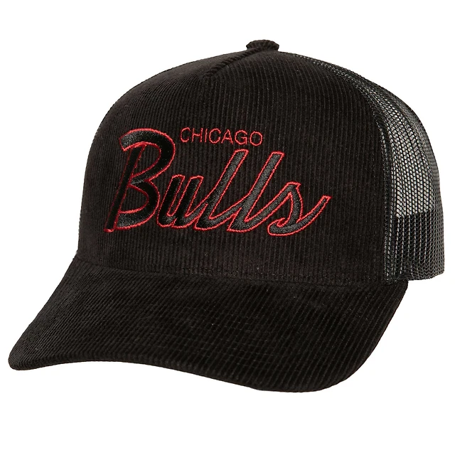 Men's Mitchell & Ness Black Chicago Bulls Times Up Classic Script Cord Trucker Hat