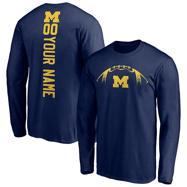 Men's Navy Michigan Wolverines Playmaker Football Personalized Name & Number Long Sleeve T-Shirt