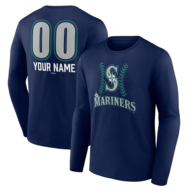 Men's Navy Seattle Mariners Personalized Name & Number Fastball Long Sleeve T-Shirt