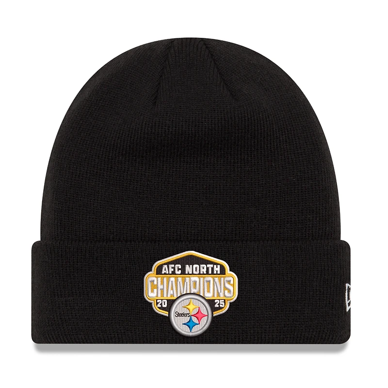 Men's New Era  Black Pittsburgh Steelers 2025 AFC North Division Champions Cuffed Knit Hat