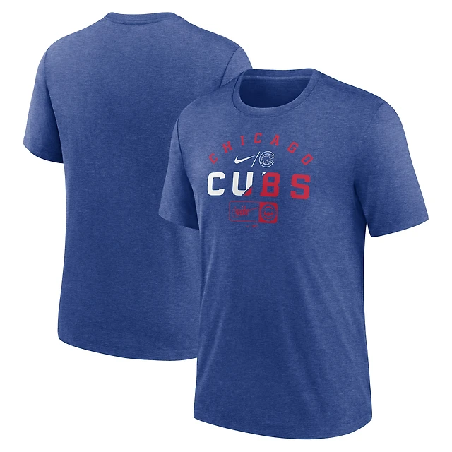 Men's Nike Heather Royal Chicago Cubs Rewind Review Slash Tri-Blend T-Shirt