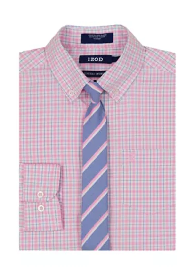 This IZOD shirt features a crisp plaid pattern in cool ocean-inspired tones for a polished, coordinated look. Designed for both comfort and style, it pairs effortlessly with dress pants or chinos for work, special occasions or smart-casual events. Button closure Button-down collar Long sleeves Imported Material & Care Polyester Machine washable