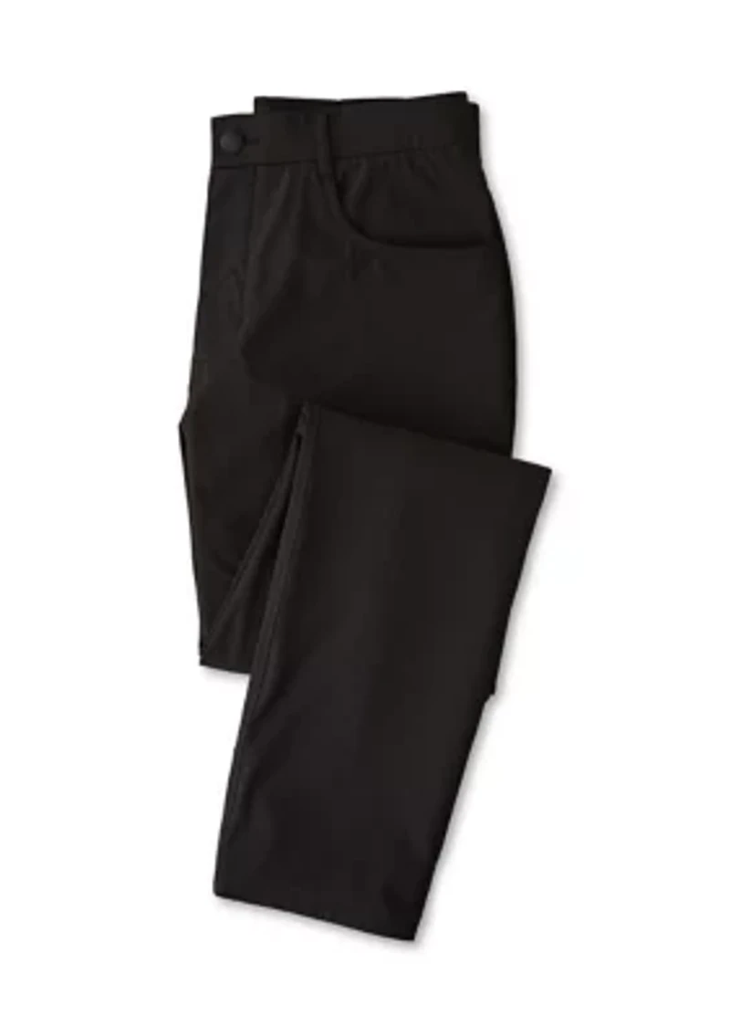 This Callaway® Golf trouser offers a refined trouser silhouette with the comfort of elastic panels at the waist for a flexible fit. Designed with classic five-pocket styling, this piece combines smart tailoring with everyday ease. Elastic sides only Straight fit Imported Product Specifications 30" 31" 32" 34" inseams Material & Care Polyester Machine washable