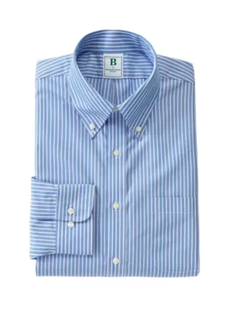 This non-iron dress shirt from B by Brooks Brothers™ is crafted from cotton broadcloth. The button-down collar, a Brooks Brothers innovation, has been the most imitated item in fashion history since it was introduced in 1900. The signature 6-Pleat Shirring® at the barrel cuffs and pucker-free seams reinforce Brooks Brothers' dedication to a well-made dress shirt. Additional features include a left chest pocket. Button closure Button-down collar Long button-cuff sleeves 1 chest patch pocket Imported Material & Care Cotton Machine washable