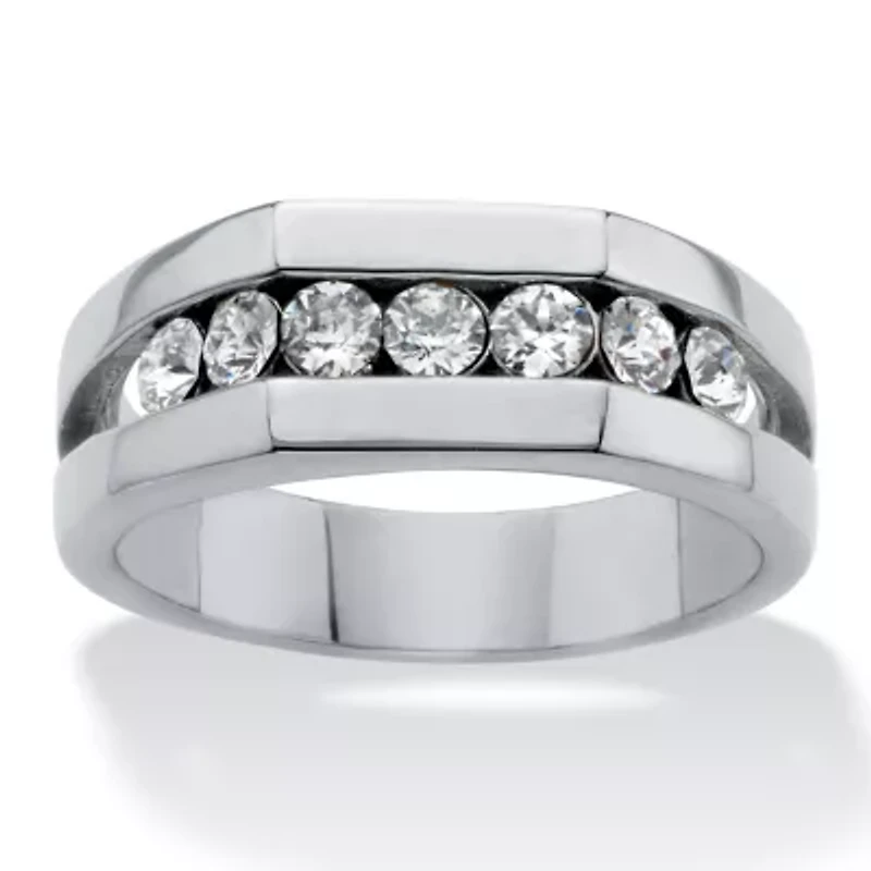 Classic, handsome styling and just enough bling makes this wedding band perfect for his special day. A single row of round crystals are set in a squared off beveled stainless steel design he'll cherish. Stainless steel. Sizes 8-13.7 CrystalsStainless SteelMeasures: 24 mm wide x 8 mm long x 3 mm high; Shank Width: 4.5 mm wideIncludes gift box and drawstring pouchStainless SteelShank Width: 4.5 mm wideDimensions: 24 mm wide x 8 mm long x 3 mm highIncludes gift box and drawstring pouch 7 Polished finish Pave setting Warranty available, Limited liability warranty, 30 Days China Imported Product Specifications 24 mm wide x 8 mm long x 3 mm high; Shank Width: 4.5 mm wide Material & Care Metal, Stainless steel Clean with a soft cloth.