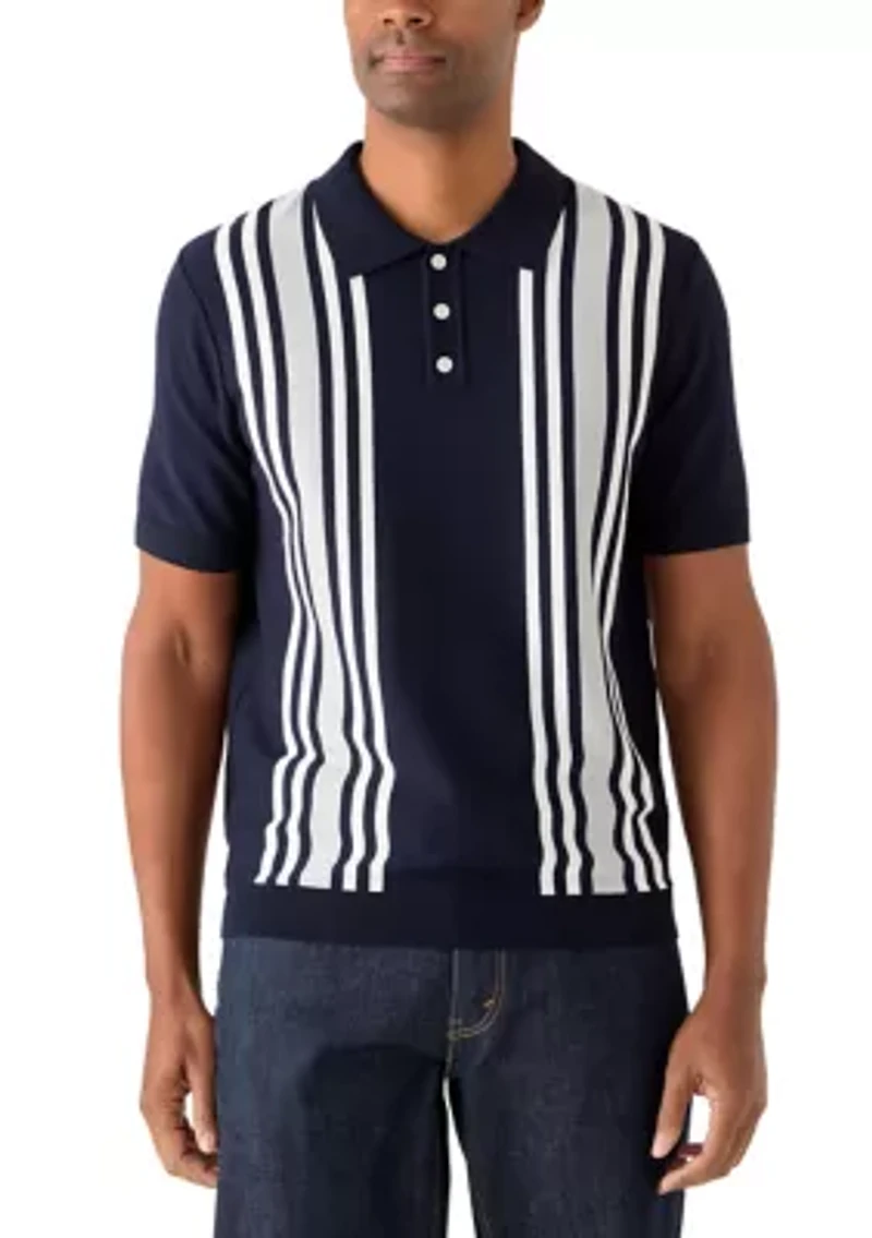 Men's Short Sleeve Three-Button Striped Sweater Polo Shirt in Chattanooga, TN