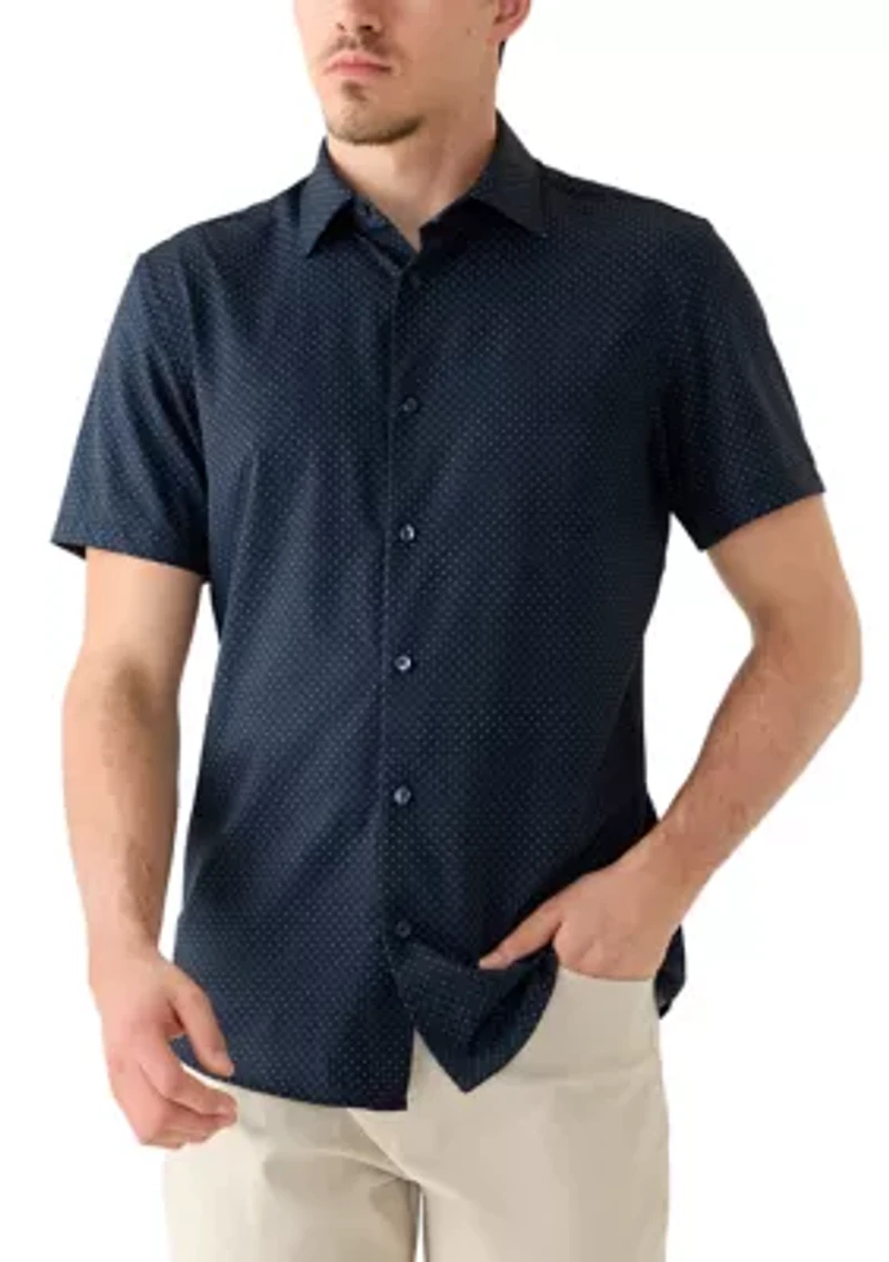 This MICHAEL STRAHAN shirt combines the classic polo silhouette with a crisp woven fabric and button-front detailing. Point collar Short sleeves Pindot pattern Imported Material & Care 90% polyester, 10% spandex Hand wash