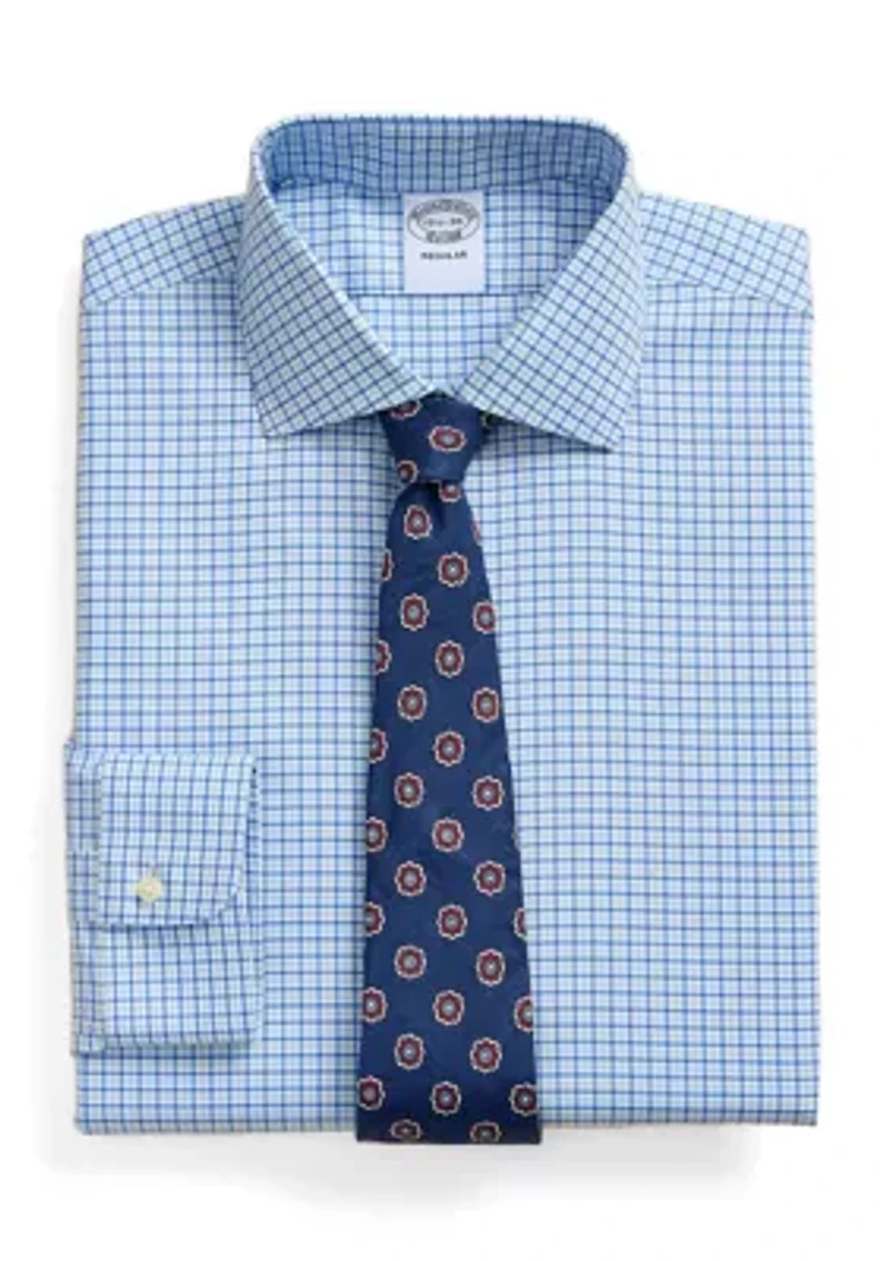 This Brooks Brothers shirt is a collared, long-sleeve shirt crafted from soft, breathable fabric for all-day comfort. Its classic checkered pattern adds timeless style, making it perfect for professional and smart-casual occasions. Spread collar Long sleeves Tattersall pattern Imported Material & Care Cotton. spandex Machine washable