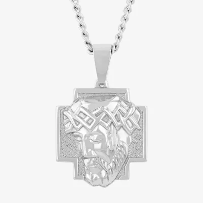 Stay thankful and keep your focus on what matters with this men's stainless steel Jesus pendant.
