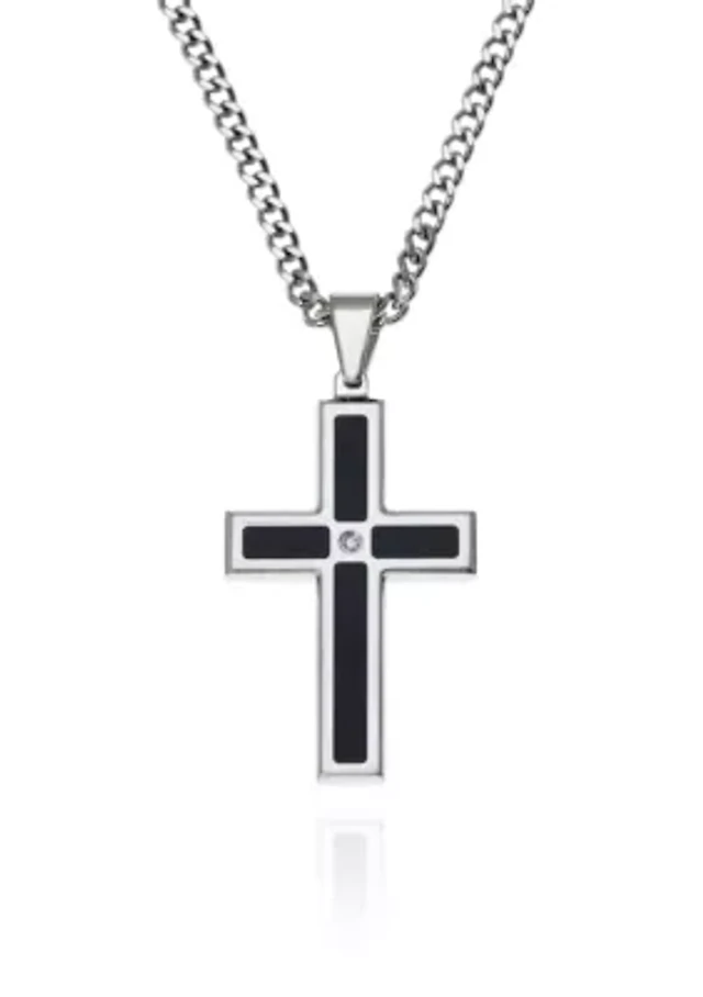 Men's Stainless Steel and Black Resin Cross Pendant