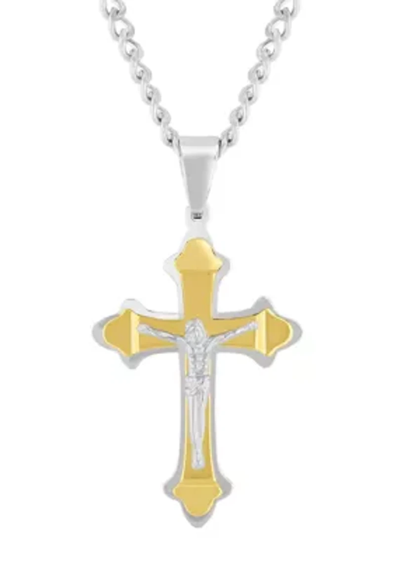 Men's Stainless Steel with Yellow Finish Crucifix Pendant