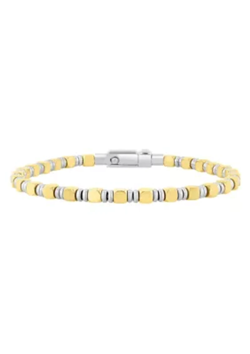 Featuring a sleek cube-link design in stainless steel with a yellow finish, this 8.5-inch bracelet delivers a modern, textured look. The polished beads and secure clasp make it an easy piece to wear for everyday style. Jewelry clasp Imported Belk Exclusive Product Specifications 8.5" Material & Care Metal, Stainless steel Clean with a soft cloth.