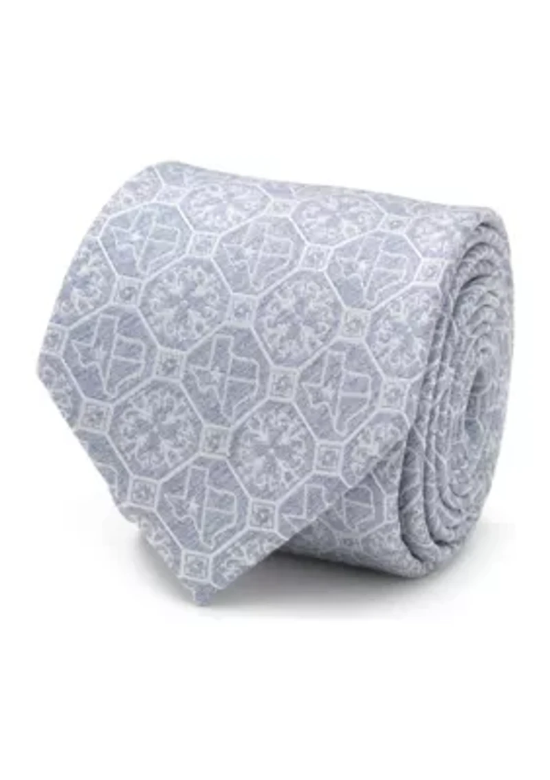 If you're looking for a soft summer tie, then look no further. This pale blue denim-feel necktie is 100% cotton and perfect for summer formal events. Featuring decorated images of the Lone Star State on geometric background, it's a simple way to show your appreciation for your beloved Texas home. Imported Material & Care Cotton Dry clean only