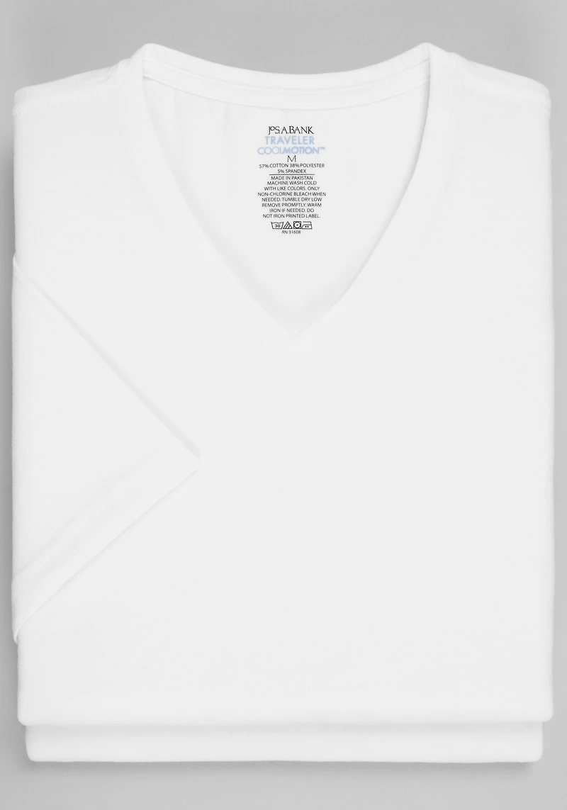 Men's Traveler® Collection COOLMOTION V-Neck Tees, 2-Pack at Jos. A. Bank, Cream/White in Chattanooga, TN