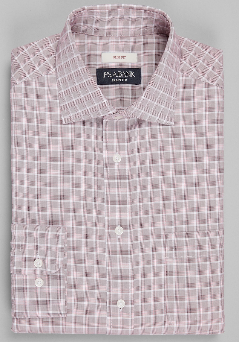 Men's Traveler® Collection Slim Fit Spread Collar Glen Plaid Dress Shirt at Jos. A. Bank, Burgundy