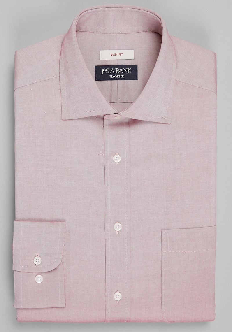 Men's Traveler® Collection Slim Fit Spread Collar Solid Dress Shirt at Jos. A. Bank, Red
