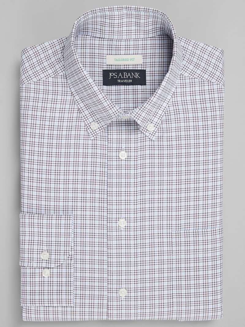 Men's Traveler® Collection Tailored Fit Button-Down Collar Check Dress Shirt at Jos. A. Bank, Burgundy