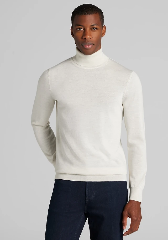 Men's Traveler® Collection Tailored Fit Merino Wool Turtleneck Sweater at Jos. A. Bank, Cream/Ivory/White