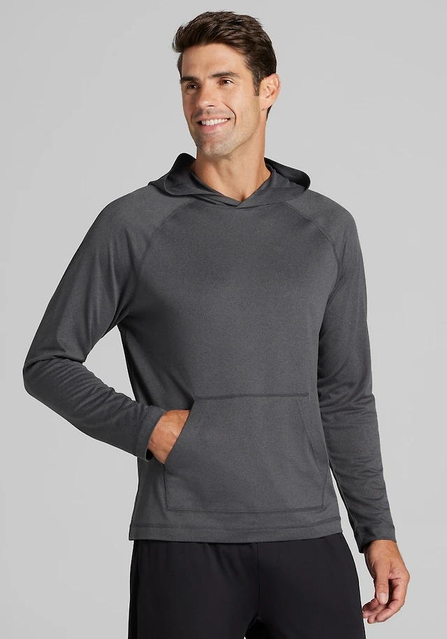 Men's Traveler® COOLMOTION Tailored Fit Heathered Hoodie at Jos. A. Bank, Black/Grey/Iron Gate